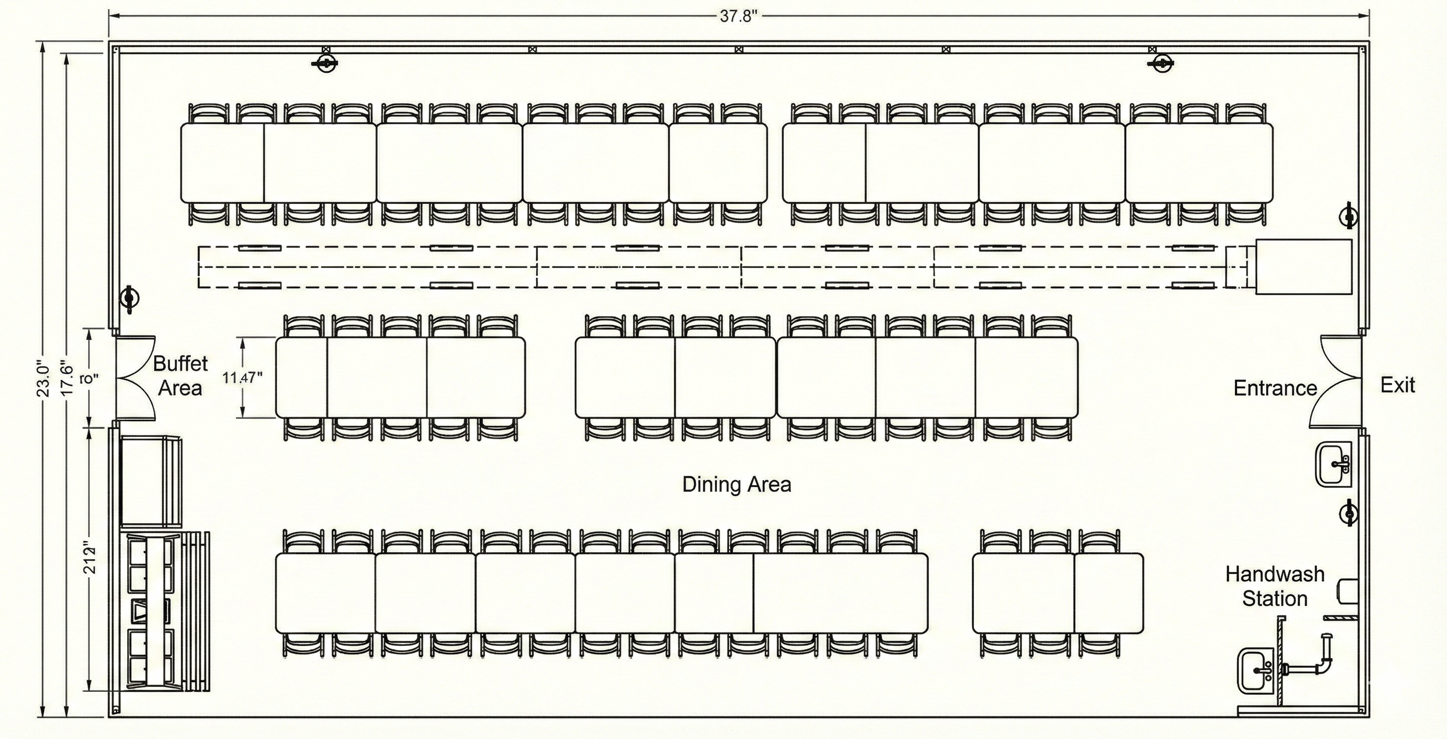 الحل الهندسي الأكثر تطوراً للتغذية الجماعية في المواقع النائية. مطبخ صناعي احترافي داخل حاوية شحن قياسية بنظام High Cube، قادر على خدمة 1,000 شخص يومياً بكفاءة متناهية.