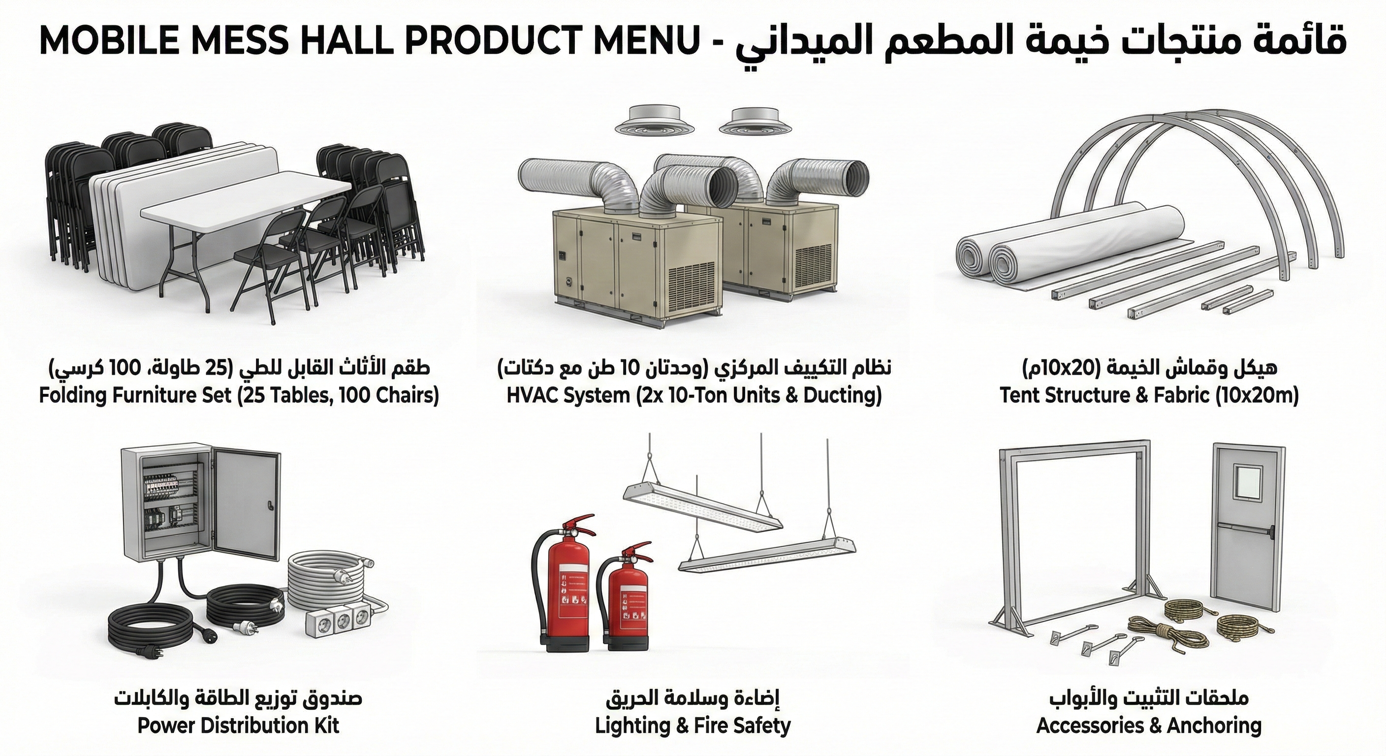 سواء كنت تبحث عن حل عسكري تكتيكي أو منظومة إعاشة لمشاريعك المدنية، فريقنا الهندسي جاهز لتقديم حلول مخصصة