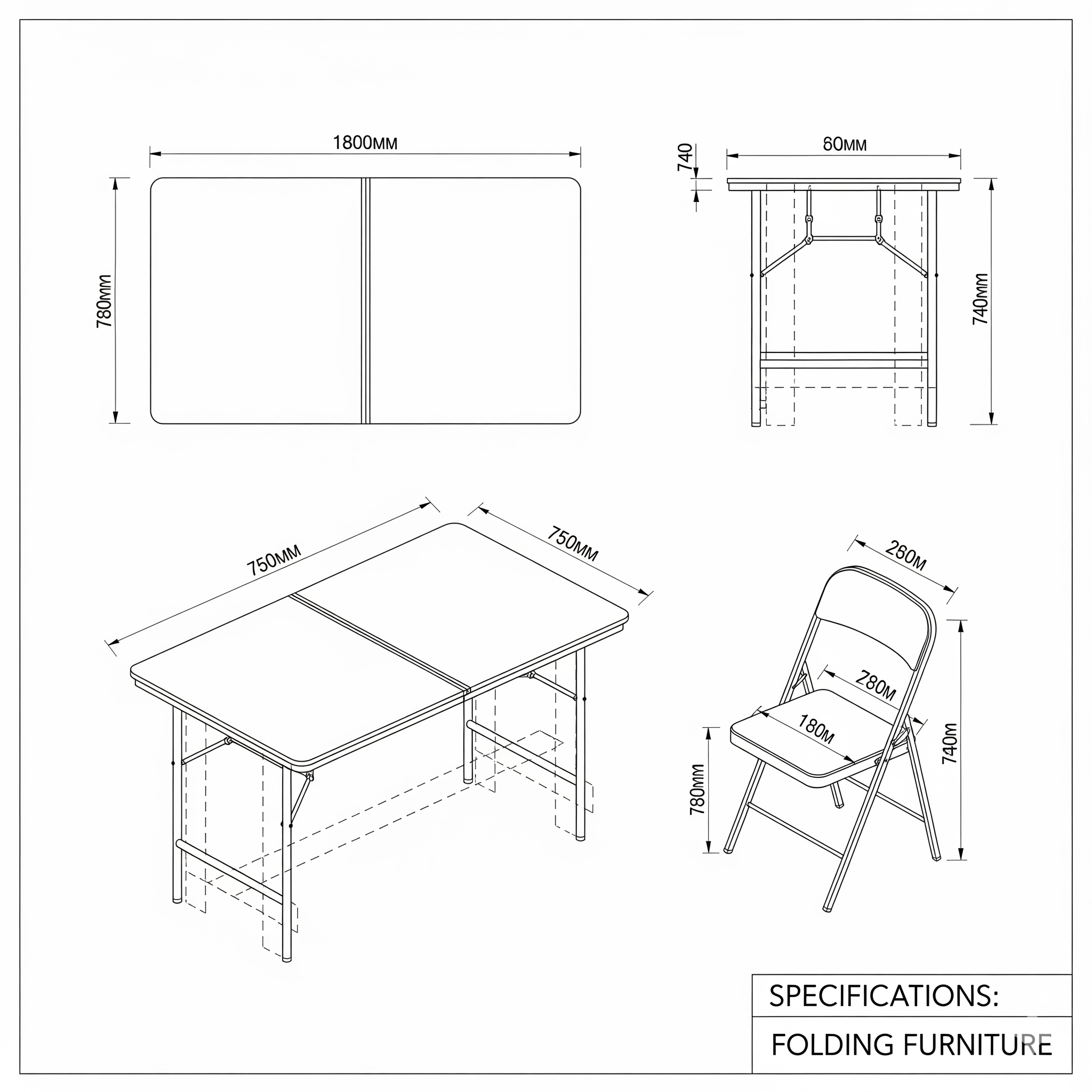 طاولات بولي إثيلين مقاومة للخدش وكراسي فولاذية بزوايا مستديرة